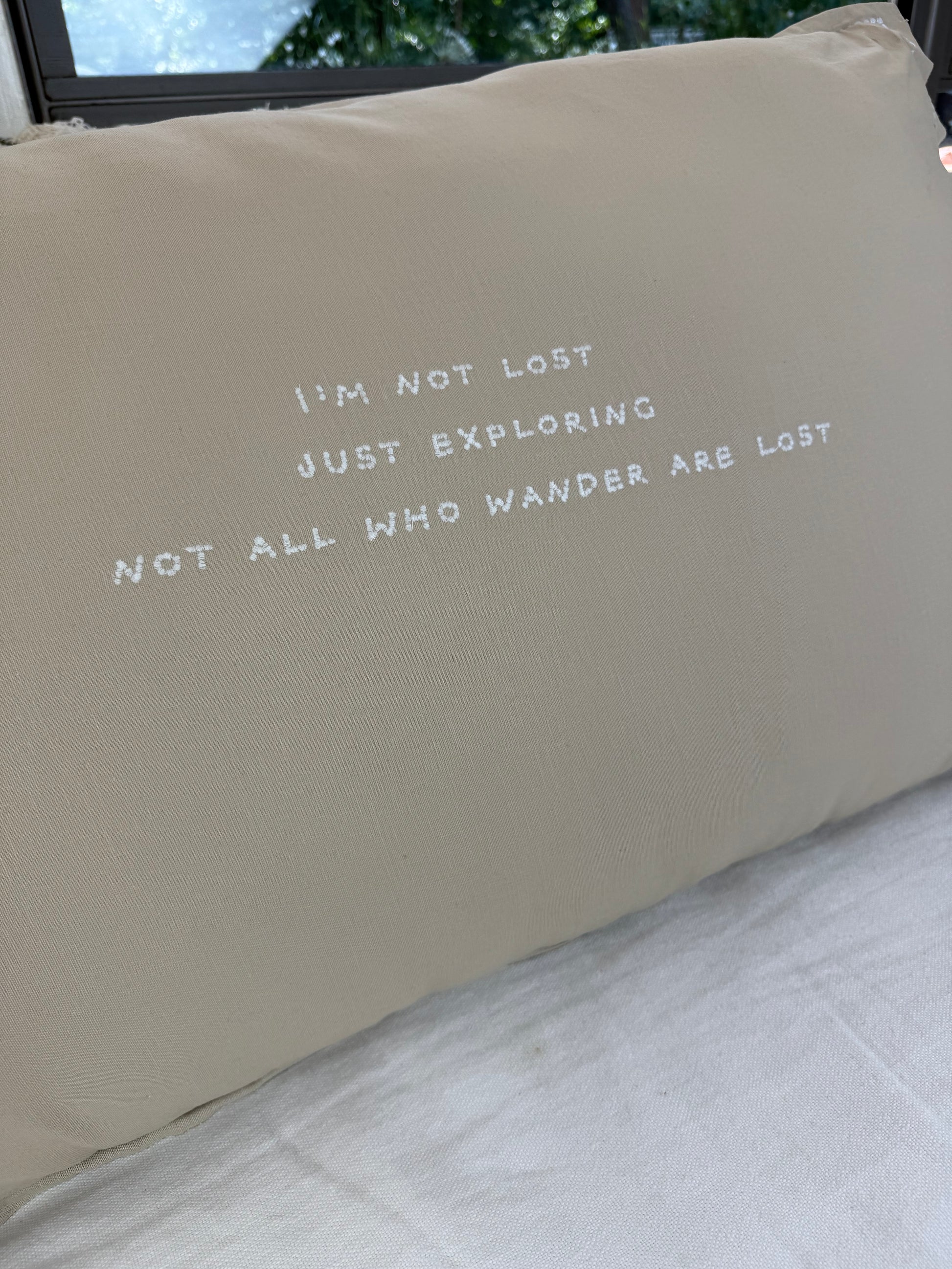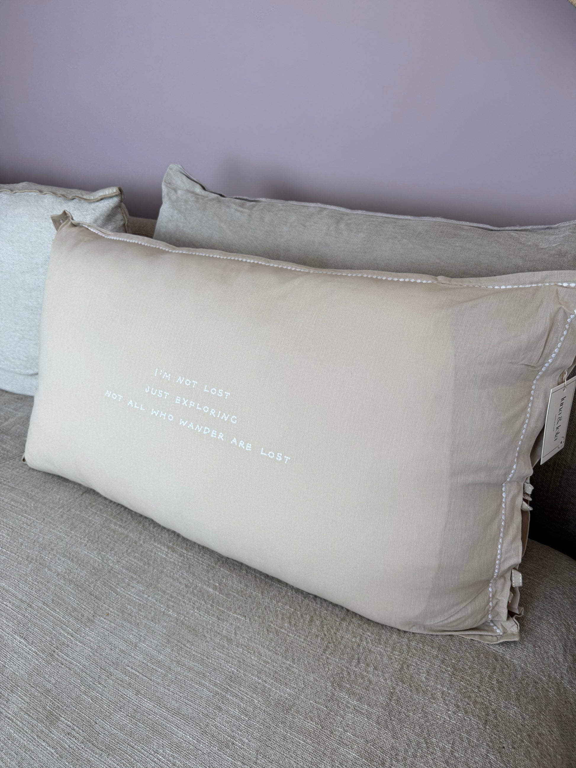 Linnen kussen + binnenkussen | I'm Not Lost | Naturel