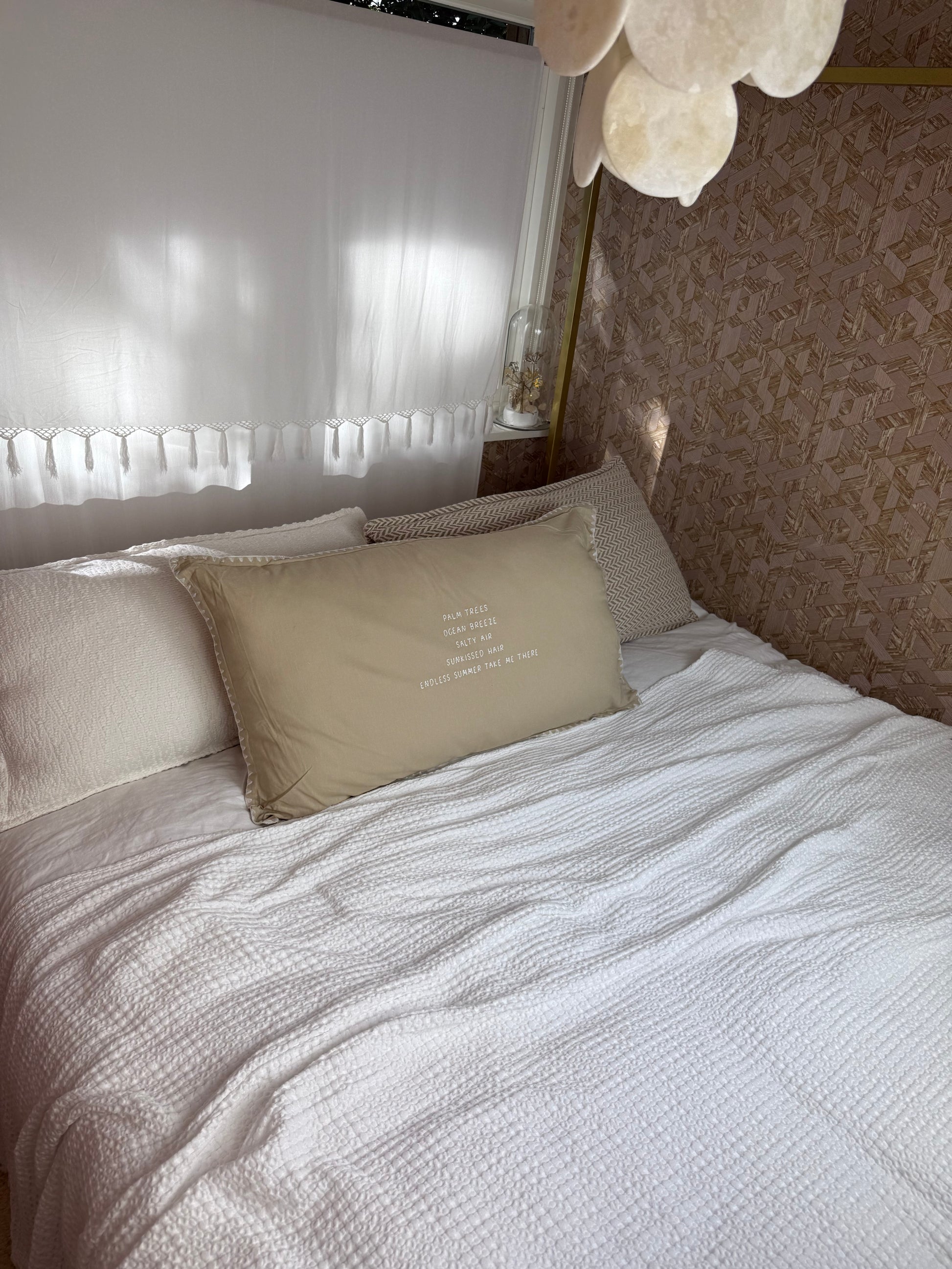 Linnen kussen 90 x 50 cm + binnenkussen | Palm Trees Ocean Breeze | Naturel