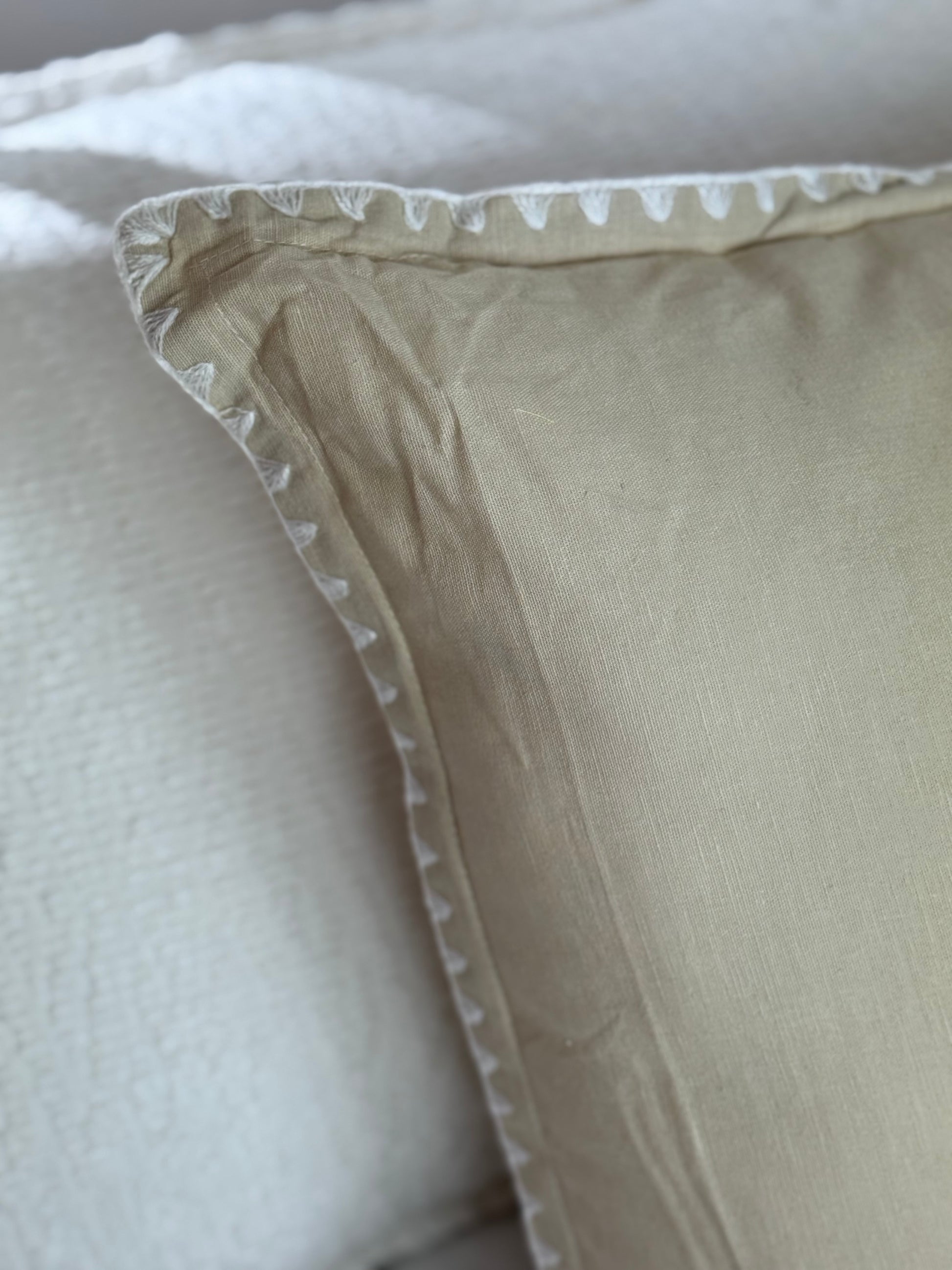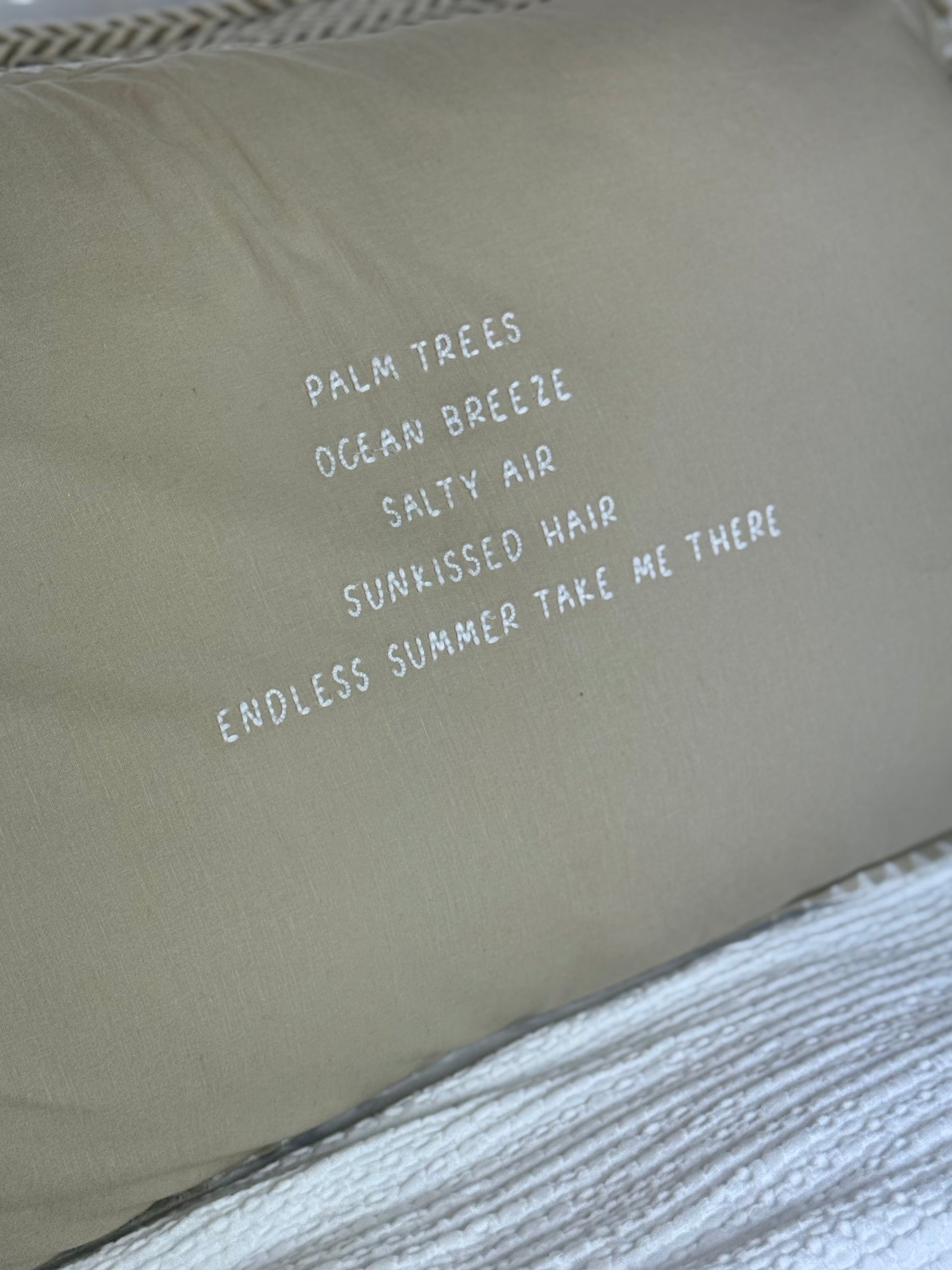 Ontdek de schoonheid van vakmanschap met ons handgemaakte linnen kussen (55% katoen, 45% linnen). Elk kussen is uniek en voorzien van met de hand geborduurde tekst, liefdevol gemaakt door vrouwelijke ambachtslieden.