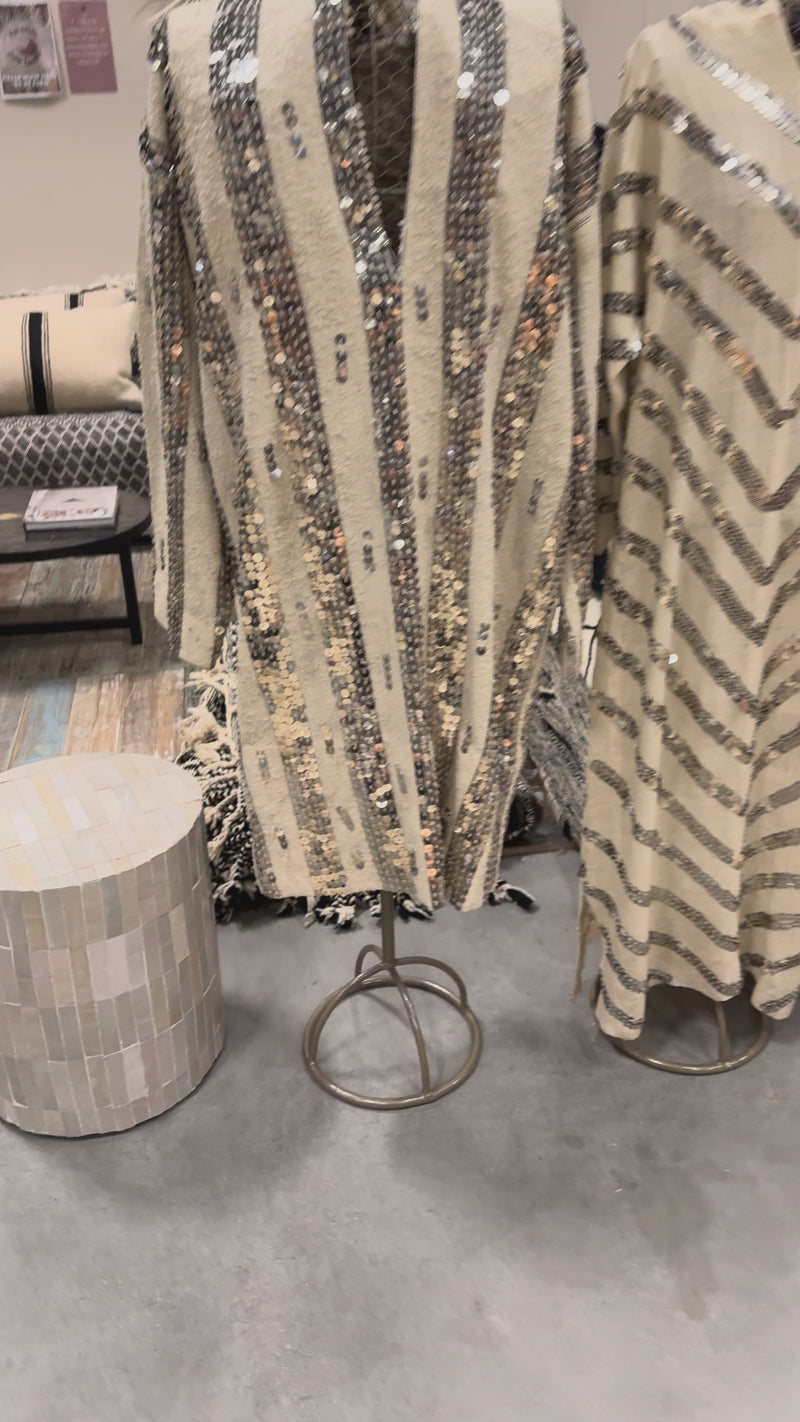 Handgemaakte kubus bijzettafel met crème Marokkaanse zelliges. Tijdloos, uniek en geschikt voor binnen, serres en tuinhuizen.